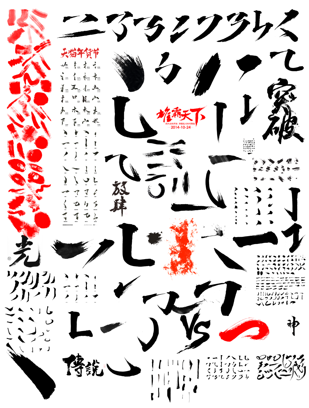 字体设计毛笔字体素材,笔画部首组合成毛笔字