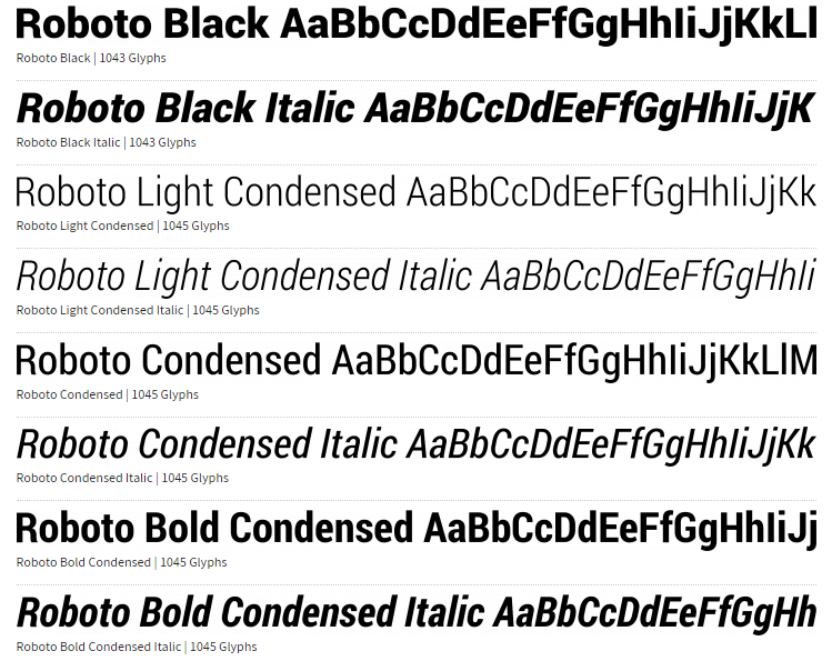 This is the normal family, which can be used alongside the Roboto Condensed family and the Roboto Slab family.