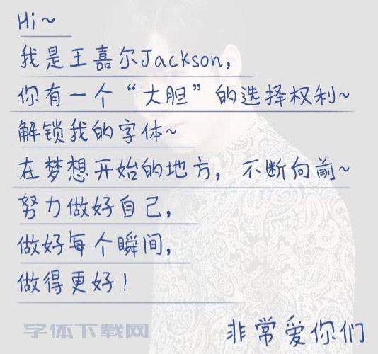 @王嘉尔 写信同款了解一下🏻 独“嘉”手写字体#汉仪王嘉尔体#已上线,大家快快get起来吧🏻