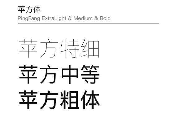 苹果专门为中国用户打造的一套字体,包括6种字重,分别是极细体、纤细体、细体、常规体、中黑体、中粗体、粗体,全部都是 .ttf 格式。