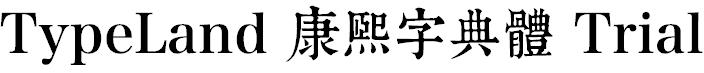 TypeLand 康熙字典體 Trial是一款非常漂亮的艺术字体,TypeLand 康熙字典體 Trial广泛用于各种书刊、画册、包装、字体设计的设计中,TypeLand 康熙字典體 Trial是TrueType字体,TypeLand 康熙字典體 Trial也是报纸和杂志和书籍中常用的字体, 设计师常用字体,主要用于海报、个性促进品牌标志设计、字体设计、等环境。