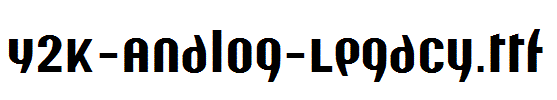 Y2K-Analog-Legacy.ttf 是一款非常漂亮的英文字体,字体设计优美、秀丽大方,书写流畅,整体效果非常漂亮,适合应用于海报设计、书籍装帧、画册封面、产品包装设计等应用,Y2K-Analog-Legacy.ttf Download Fonts。Y2K-Analog-Legacy.ttf 也是一款非常漂亮的英文艺术字体,Y2K-Analog-Legacy.ttf 字体深受广大设计师喜爱,Y2K-Analog-Legacy.ttf 字体被广泛用于广告、海报、画册、包装的设计及印刷中,好看的英文字体Y2K-Analog-Legacy.ttf!Y2K-Analog-Legacy.ttf下载。